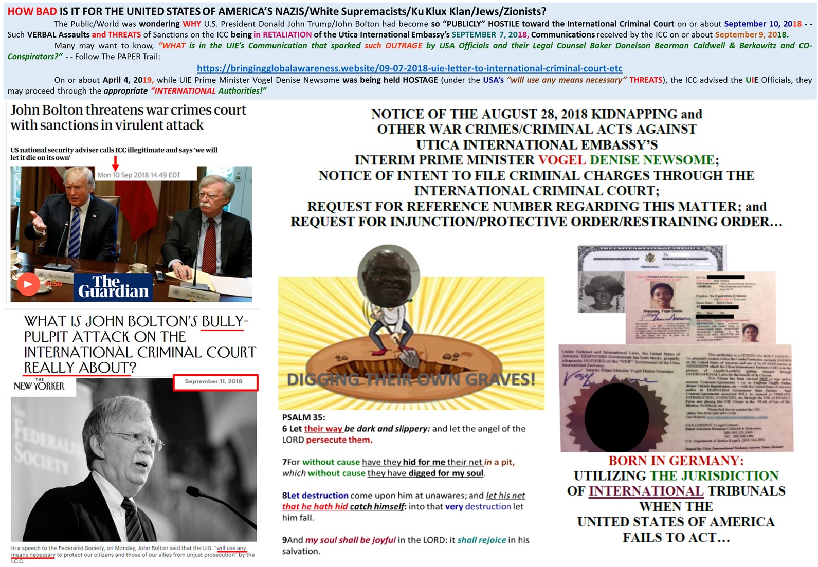 INFILITRATION Of United States Of America / United States Agencies By NAZIS, WHITE Supremacists, Ku Klux Klan, Jews and Zionists . . . To Push WAR Crimes, Crimes Against HUMANITY and Other Atrocities, etc. Against Chickasaw Tribal Nation / Utica International Embassy Officials, BLACK Indians and Other NATIVE Nations – i.e. USA / United States Being Advised To REMOVE / CLEAN OUT Terrorists . . . From Agencies - - WARNED Use Of INTERNATIONAL Options Available To BLACK Indians . . .