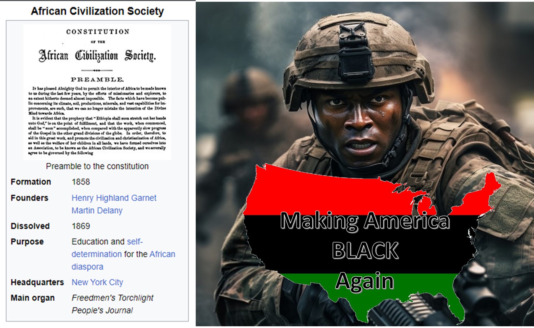 The African Civilization Society - The African Civilization Society (ACS) was founded in 1858 by Henry Highland Garnet who sought to encourage blacks Americans to emigrate to Africa. Garnet envisioned educated black Americans moving to the African Continent as cultural missionaries to lead the economic, political, and moral development of the various indigenous peoples. The ACS Constitution outlined its goals for civilizing and Christianizing Africa and people of African descent in other areas of the world. . . . They believed that cotton grown in Africa and sold on the world market would break the monopoly of southern United States slave-grown cotton in European and American textile production, and thus hasten the end of slavery. - - as of 01/11/2025: