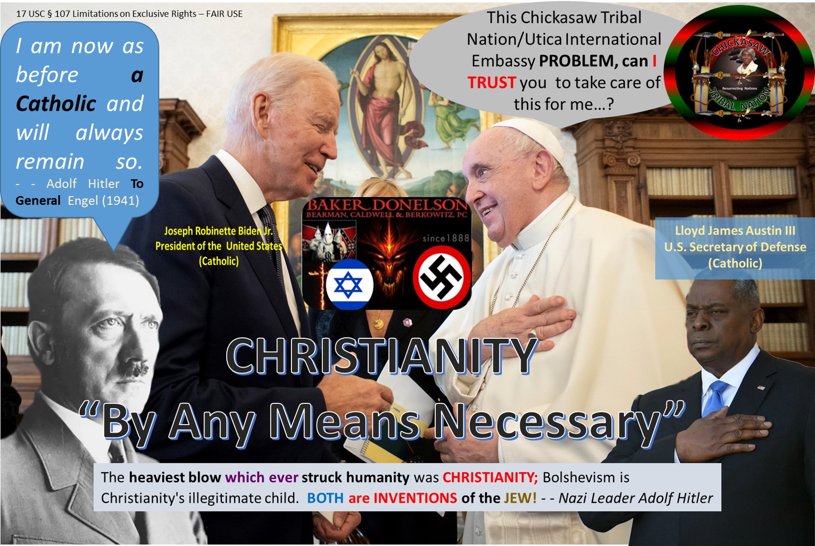 03/20/2026 UPDATE: In 2026, the Utica International Embassy looks forward to getting all webpages finalized. At the present time, some attention is being given to working on ENDING the United States of America's [a PRIVATELY held Company] and State of Israel's [Zionist TERRORIST Organization] UNLAWFUL Nazi / Zionist WAR against the Islamic Republic of Iran. Also, working on the LAWFUL establishment of applicable Alliances / Coalitions as the 1961 “ALLIANCE FOR PROGRESS” that the United States of America’s President John Fitzgerald Kennedy presented to assist SOVEREIGN Native Nations with: SELF-Government, Health, Education, Housing, Land Reform, Infrastructure and MUCH More! - - - On 12/25/2025, the Chickasaw Tribal Nation EXECUTED the FIRST Batch / Wave of ARREST Warrants and is in the process of getting assistance from the “appropriate INTERNATIONAL Authorities” for SERVICE OF PROCESS, etc. – i.e. as the International Criminal Court advised being available to our Embassy to bring the United States of America’s President Donald John Trump and others (CO-CONSPIRATORS) to JUSTICE! Please feel free to return for updates. Thank you for your interest in the Chickasaw Tribal Nation's Utica International Embassy!