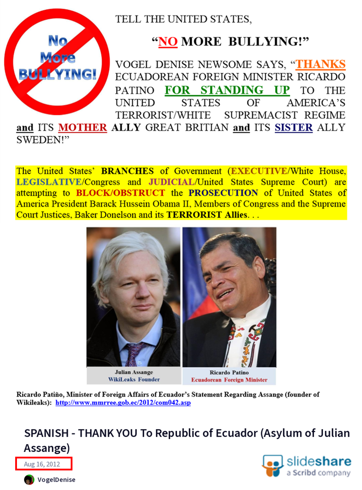 Prime Minister Newsome began following the Julian Assange matter in late 2011. Making known OBJECTIONS to extradition. Assange is a Journalist/Founder of WilkiLeaks who released information which appeared to share evidence of the United States of America’s WAR CRIMES in Middle Asia (Afghanistan . . .) – i.e. as that carried out against the BLACK Indians for purpose of creating a FAKE NATION presently known as the USA.