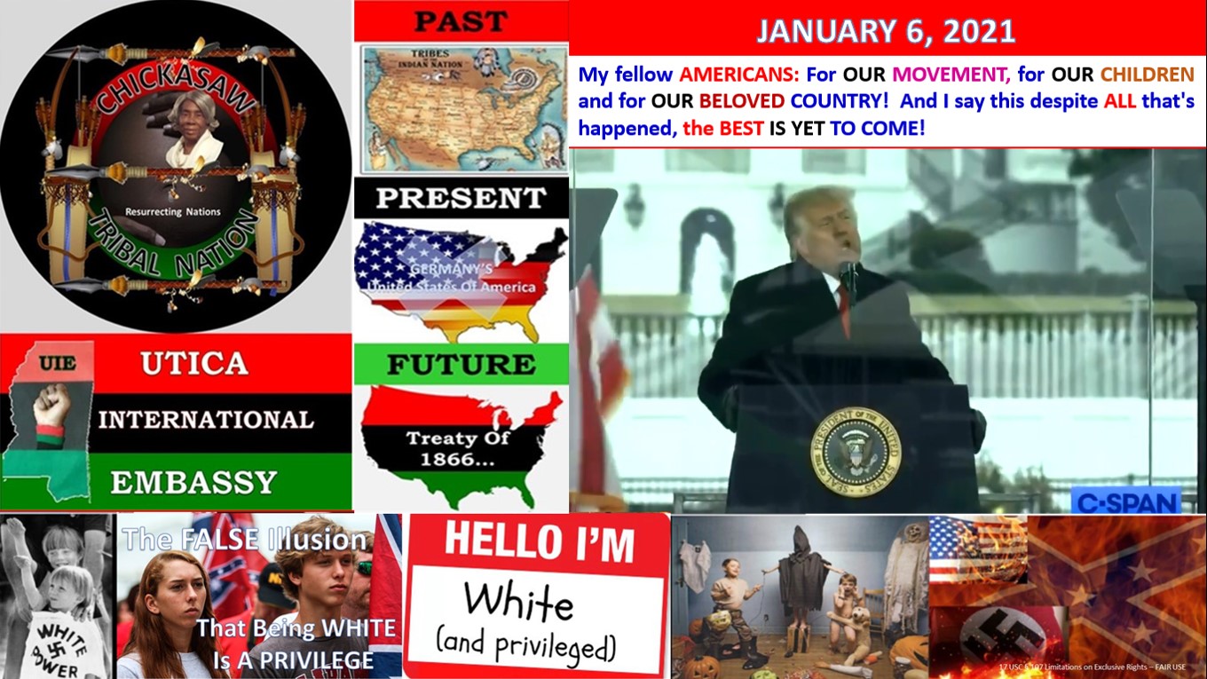 Thus, we now appeal to other “BLACK Indians” as well as those of AFRICAN Descent to reach out to the Chickasaw Tribal Nation (CTN) and / or Utica International Embassy (UIE) if you also seek JUSTICE as a VICTIM of the USA’s WAR Crimes, Crimes against HUMANITY and / or other Atrocities, etc. as a direct and proximate result that said WHITE Supremacists / Ku Klux Klan . . . Members, etc. committed and/or continues to commit AGAINST you and / or your Ancestors which include – i.e. however, NOT limited to the following:
